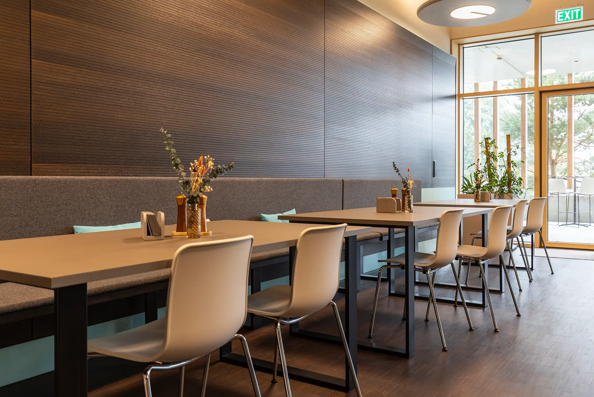 Besonderheiten: Optimale Arbeitsbedingungen durch moderne Besprechungsräume, Rückzugsräume für Projektteams sowie Sozial- und Aufenthaltsräume. Hoher Nutzerkomfort durch die Verwendung nachhaltiger und regionaler Materialien.